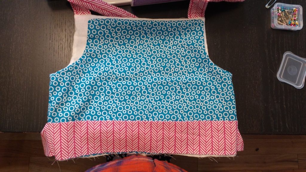Sew your shoulder ties, right sides together, leaving the bottom open for turning.