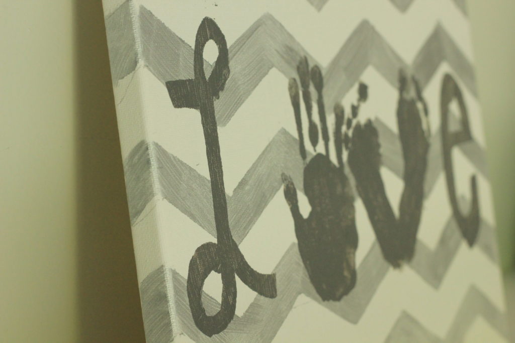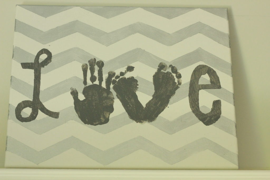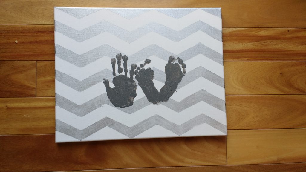 I am so happy with how it turned out! Word of advice. Make sure your stripes are a lighter color than your hand/foot print. I made the mistake of making the stripes dark, and hand print light. Did not look nearly as good, so don’t do what I did.