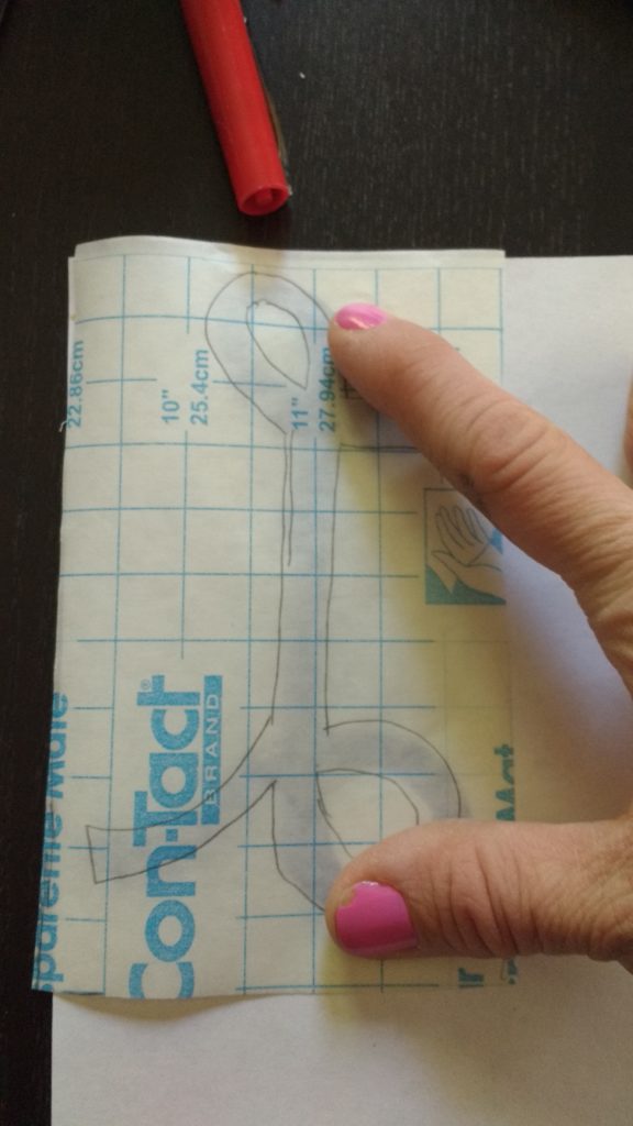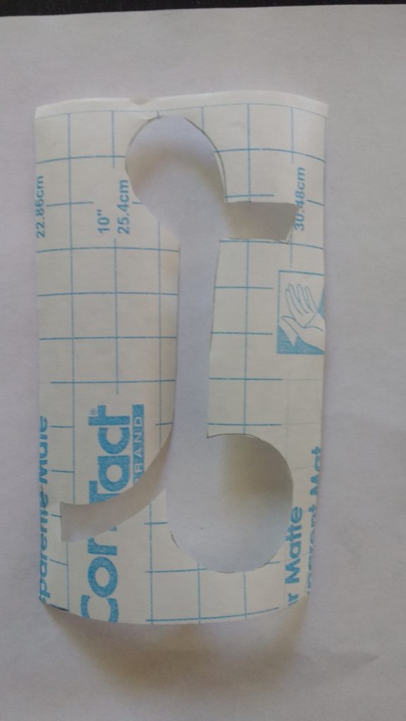 Peel the paper of and put the contact paper where you want it. I also cut out the centers of the little loops, so if you are doing cursive letters be sure to do that too.