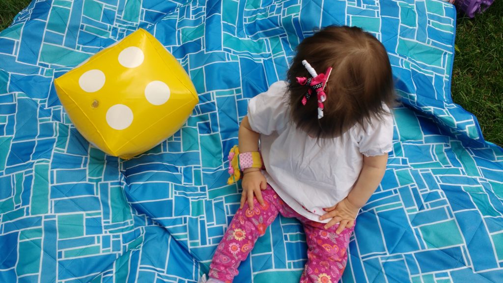 At the beginning of the week the weather was pretty nice so we were able to spend some time outside. Even when it is just playing in our front yard, I like trying to get some quality time outside. I was also super excited to snag up some inflatable dice from Target. I’ve been wanting big dice for a while now, and this will work great!!