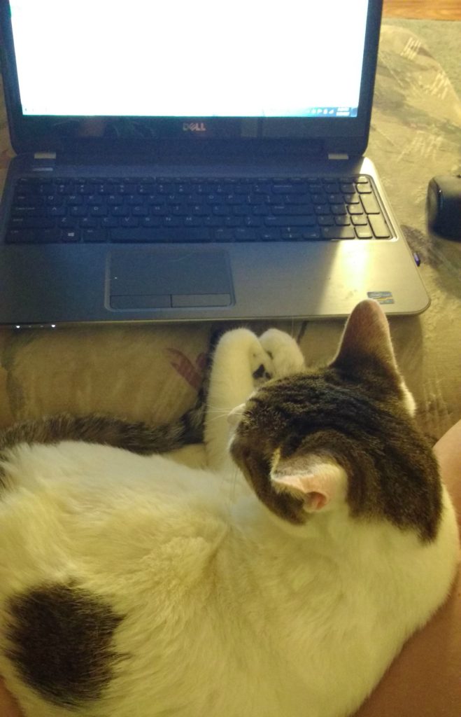 At any rate, whenever I try to do things on the couch, I get a visitor.