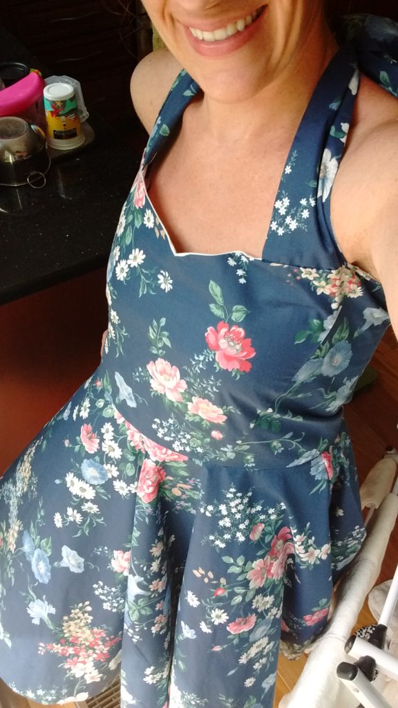 One of my goals for this month was to make myself a dress, and I am happy to say I have almost accomplished it! The only thing I have left to do is hem it up! While it isn’t perfect, I’m pretty proud of myself, since I made my own pattern up. Â I had to make a few adjustments here and there but overall it turned out.