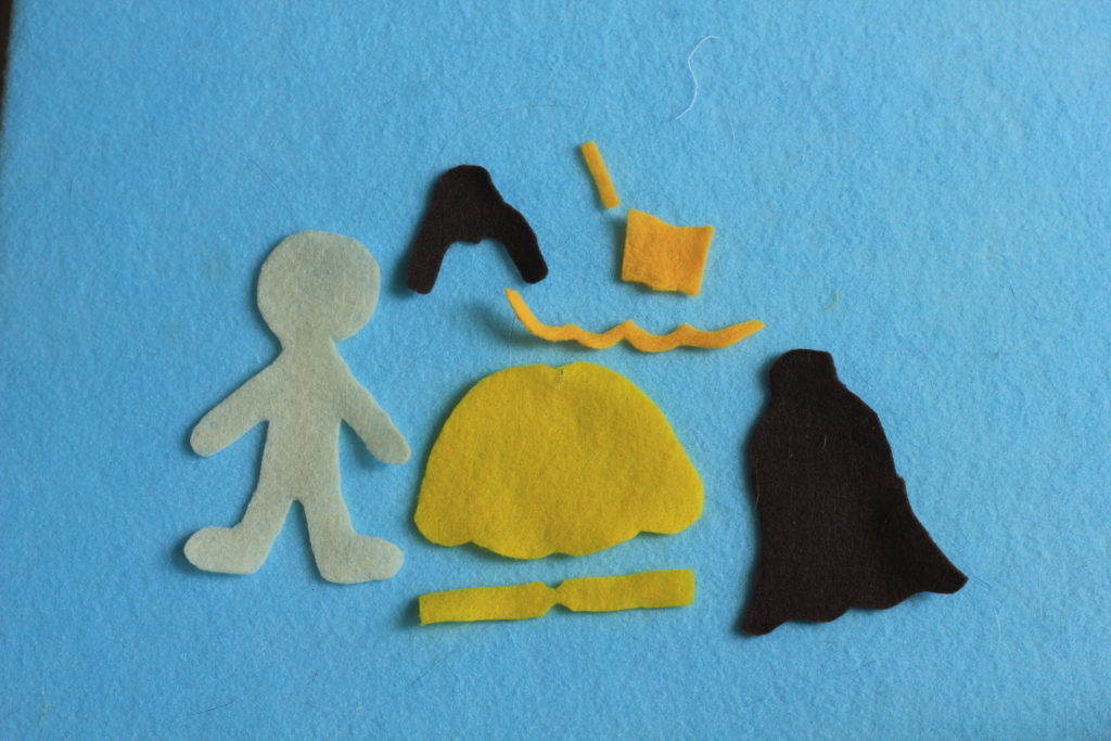 Add eyes and a mouth. I hand stitched these, using a satin stitch for the eyes, and back stitching for the mouth.