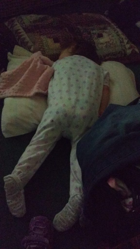 And Autumn refused to sleep in the crib (with so many grand babies, they bought a crib as the pack and play was getting to small for my nephew), so the floor it was.
