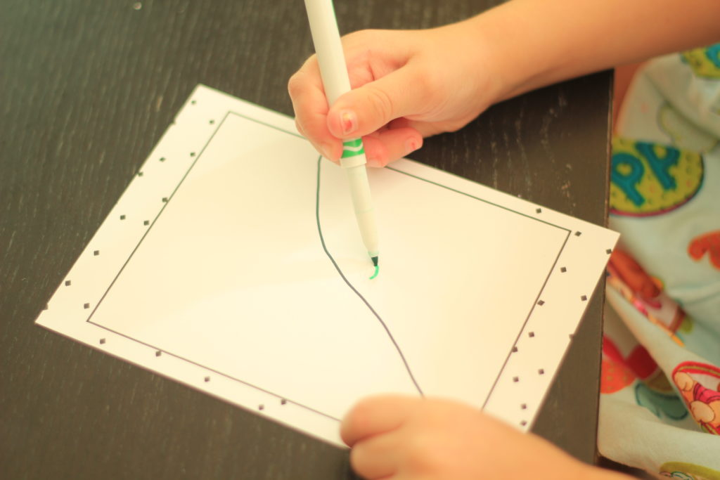 Annabelle had a blast designing her card! Before I let her put marker to paper we talked about what kind of things you do in winter, and what she may draw. She opted to draw a picture of herself sledding, along with a snowman and Santa.