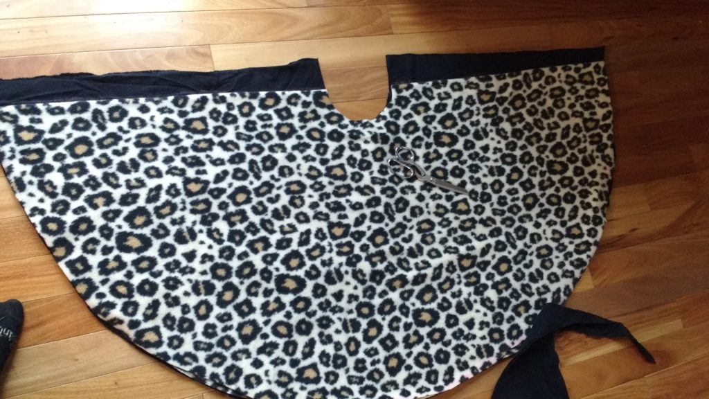I folded the poncho in half and used that as a pattern to cut two half circles.