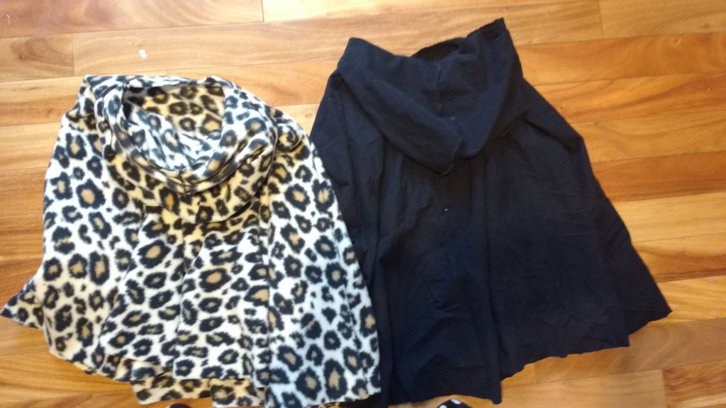 In this step you will attach the hoods to the poncho. The fleece hood goes with the fleece poncho, the flannel attaches to the flannel poncho.