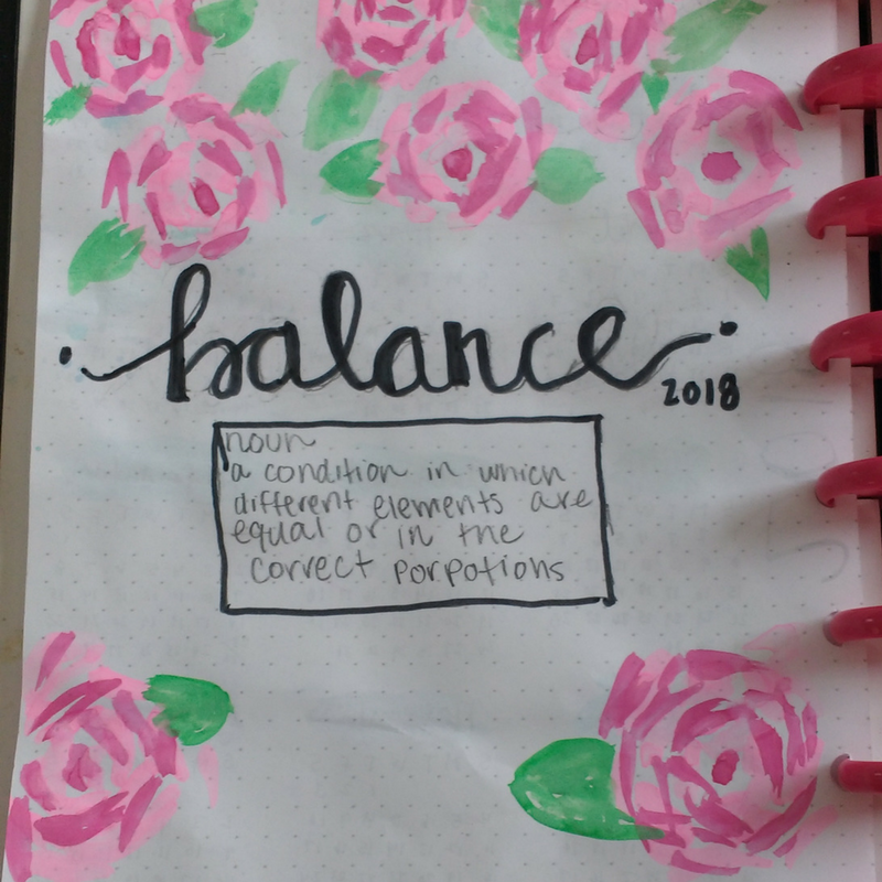 Here we are 19 days into January and I finally decided to come up with a word. At first I wasn’t going to, but then the more I thought about it, the more I realized all my 2018 goals have something in common. Finding balance. So that friends, is my word for 2018. Balance. I put the word in my bullet journal with a quick definition I found online. Balance: “a condition in which different elements are equal or in the correct proportions”. I really like that last part. In the correct proportions. That means my time should be greater with the more important things (God, family, friends ect).