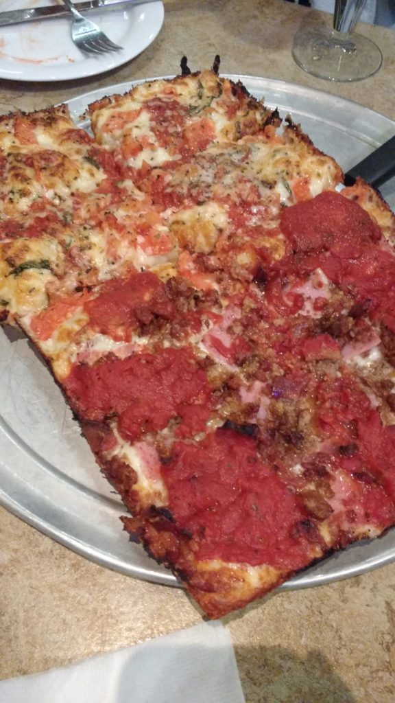 Now for those of you from Michigan, you are probably familiar with Buddy’s. For those unfamilar, Buddy’s sereves “The Original Detroit Style Square Pizza”, but what may suprpise you is that I have never eaten there. Growing up I didn’t like pizza, so we never went. Since I now like pizza, I knew that I wanted to try it out. It is a pretty popular place, and even though we got there around 6 we still had to wait for a table, so we headed to the bar to get some drinks.