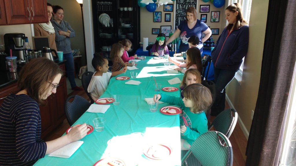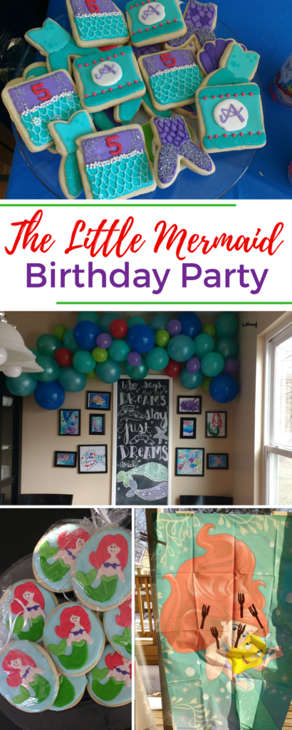 This was one of the first bigger birthday parties Annabelle had. When planning it, I didn’t know if I needed to have tons of activities, or if the kids could just play with our toys. I decided on doing two simple activities, a paint your own cookie, and pin the fork in Ariel’s hair.
