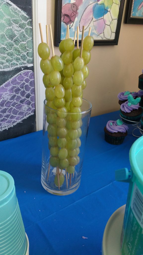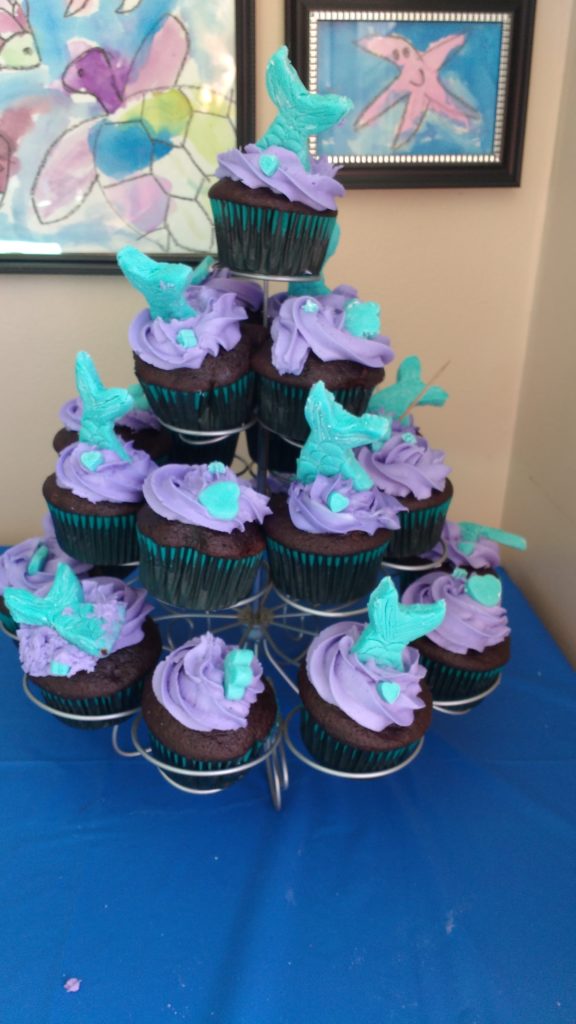 Also on the food table were the cupcakes (complete with fondant mermaid tails). I probably should have done blue frosting and purple tails, but they were still tasty!