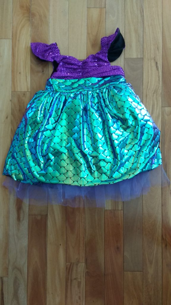 And of course what birthday party would be complete without a fun dress?? As a child I remember that the little girls always used to wear poofy, frilly dresses to all the parties. I also remember the one time I was super itchy before leaving to go to a party, only to have my mom lift up my dress to find chicken pox. Needless to say I did not go to that party (and was quite upset that I couldn’t go. The mom later brought me a piece of cake and goody bag, which was super nice). At any rate, I ended up making Annabelle an Ariel dress, and I love how it turned out! Thankfully she loved it too. 🙂 Once again, I’m going to get a separate tutorial post up for that dress.