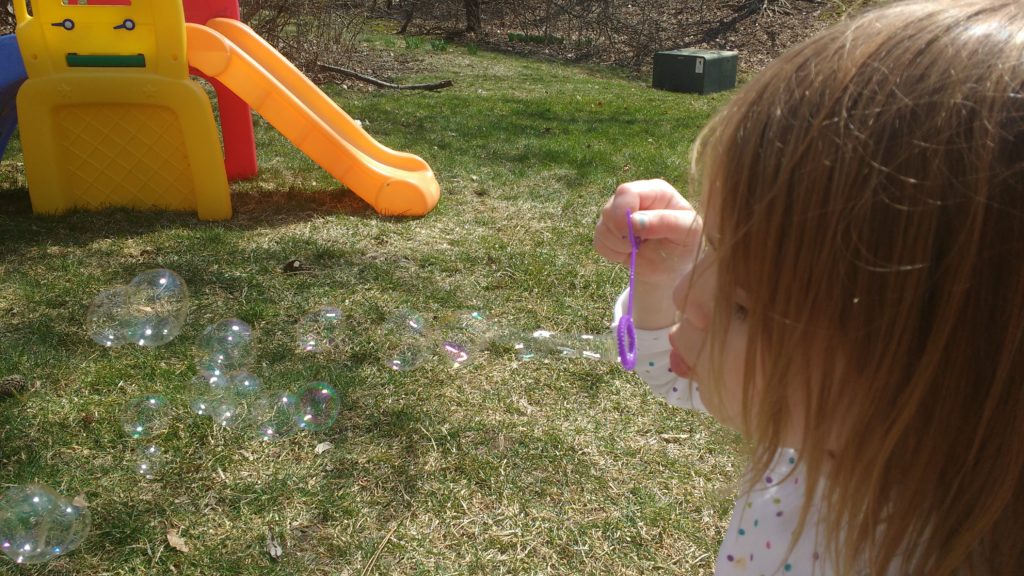 We also headed to our neighbors house to play outside. Unfortunately, it is supposed to rain all weekend. 🙁 That’s why we spent as much time as possible outside yesterday.