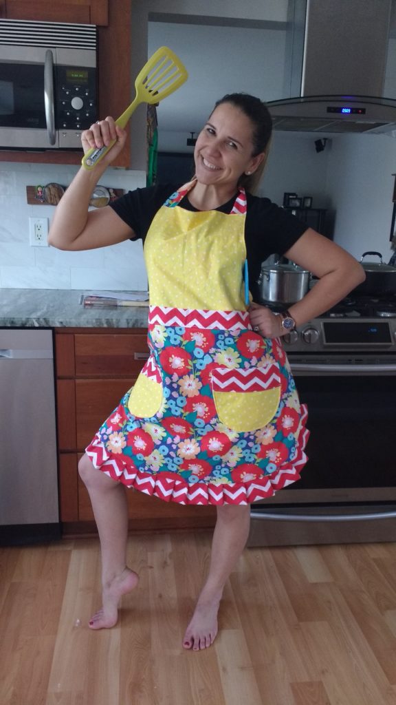 You remember how I shared that picture of the fabric like last month (or maybe even two months ago)? Well I finally finished what I was making! After my friend dyed my hair, I asked her what I could do for her, and she asked me to make her a colorful apron. Well folks, I delivered, and I’m happy to say that she loved it! My goal is to get the pattern up in two weeks.