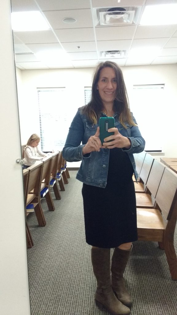 I got some brown boots last year and can’t wait to wear them again! I was able to bust them out for church (and yes, I took a picture at church. They have a full length mirror, I do not) yesterday, and can’t wait to wear them more. I’m hoping with leggings and a long tunic or sweater to cover my tush. 😉