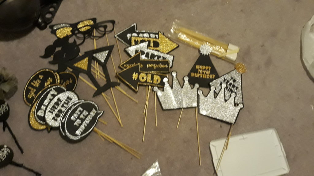 I also knew I wanted to make a “photo booth” so I created a crap ton of props using my Silhouette. I used my home made backdrop stand to create the booth as well.