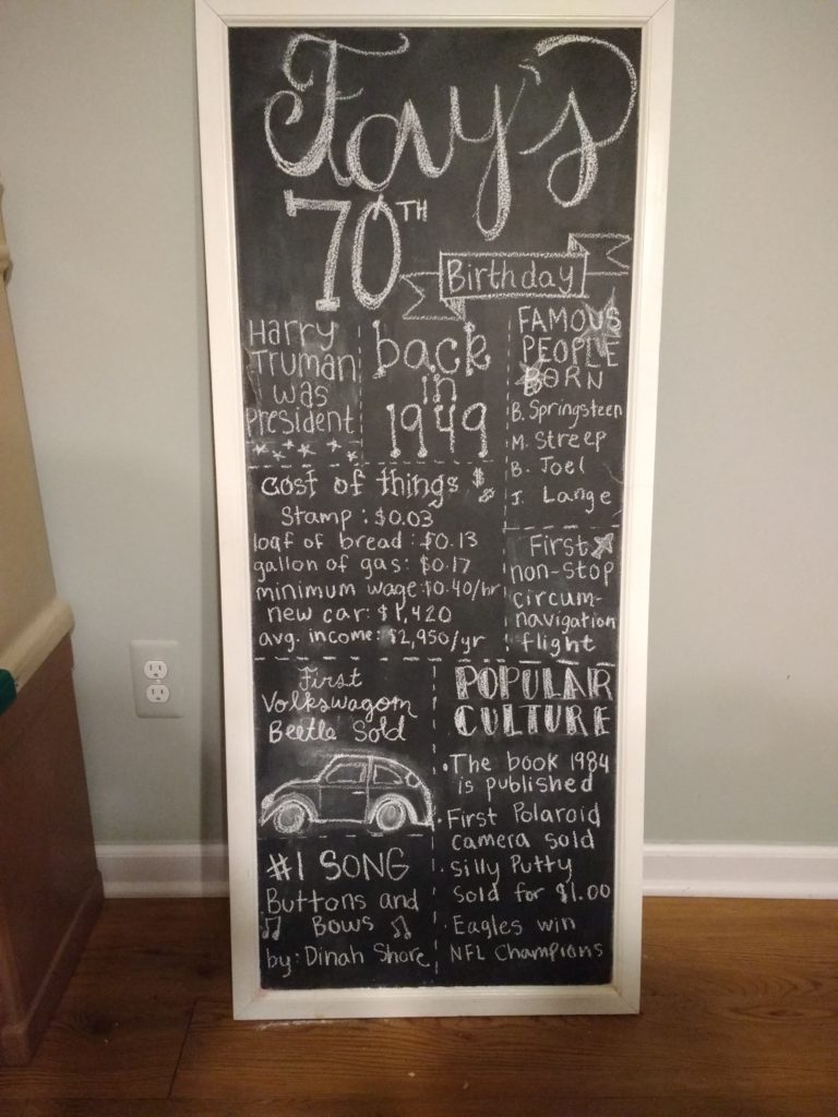 Finally I had to create a cool chalkboard, with facts all about 1949.