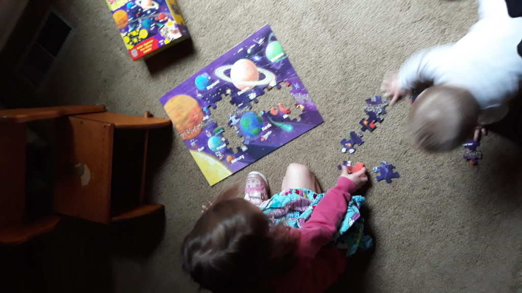 Since we live about 20 minutes from church after dropping Annabelle off the girls and I head to my parents to hang out. today Autumn and I did a puzzle.