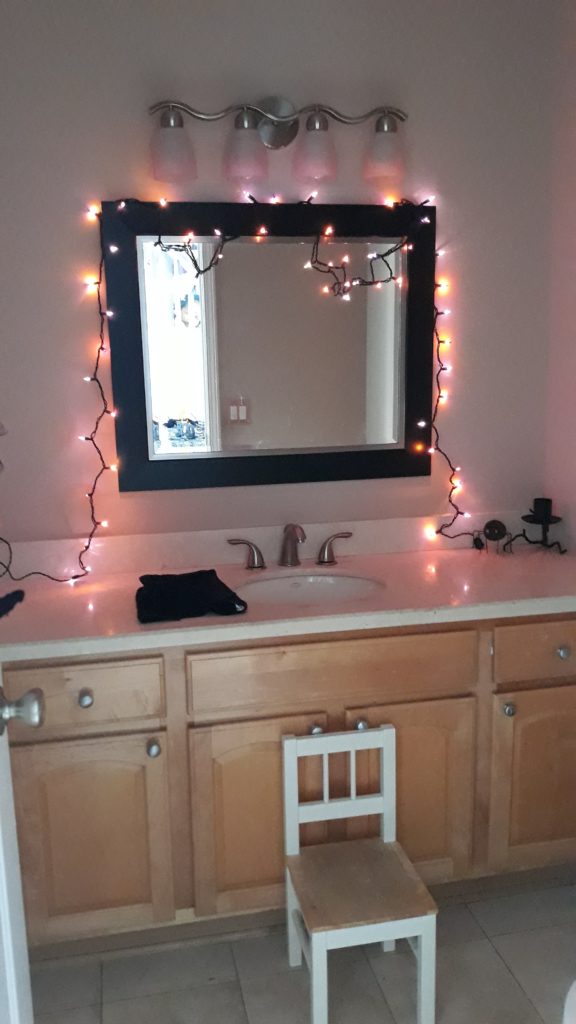 More lights in the bathroom (they were on major sale, so I bought a few boxes). Then just a little spider candle holder in the corner.
