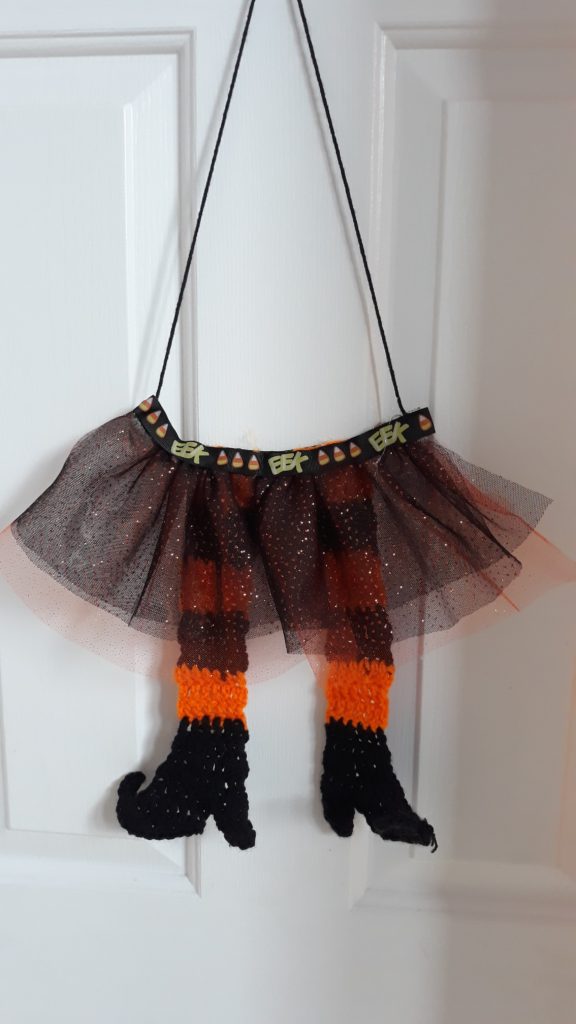 The strand of pumpkins is actually from Matt’s childhood, and while the lights no longer work ( 🙁 ) I think they look cute as garland. I made the Trick or Treat Sign (pre silhouette days, maybe next year I’ll update that), as well as the crochet pumpkins.