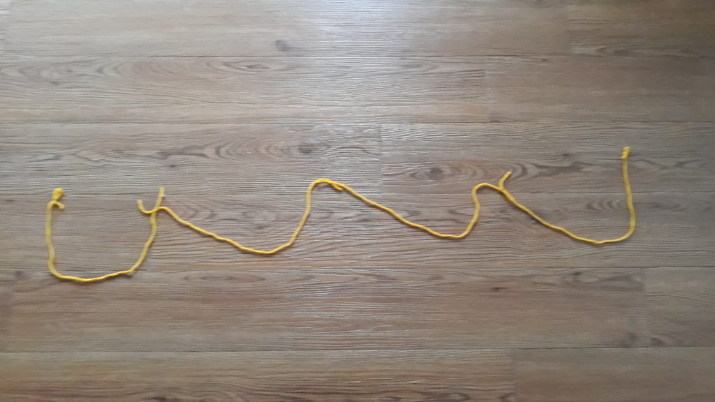 Next up is to tie it around the middle. Be sure to leave long strands since you will be tying it around the string you use for your garland.