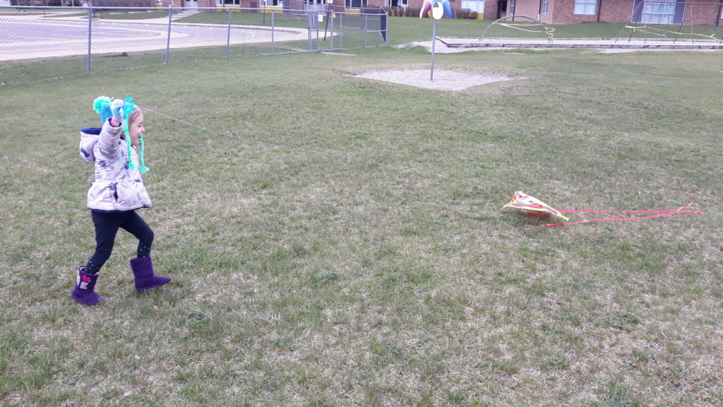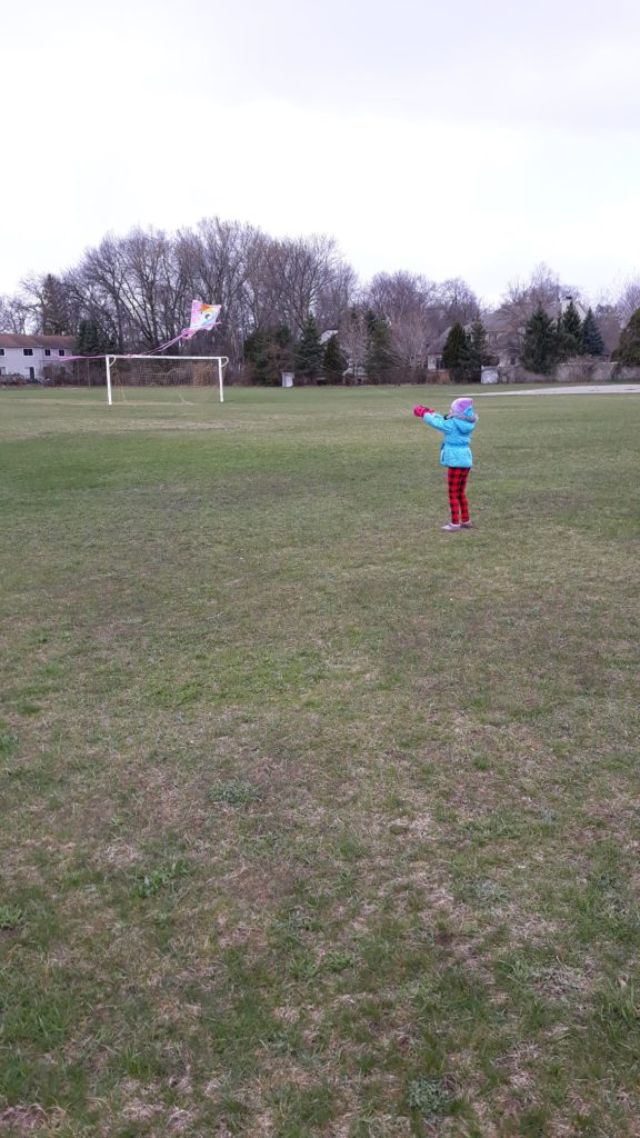 One day this week it was very windy (are really cold, hence the winter gear that I thankfully have not washed yet) so we went to the school to fly kites in the field.