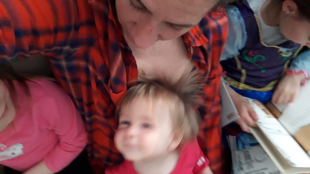 And of course it’s always a pile up on mom when she is on the couch. But in all honesty it’s super cute. Whenever I read with Annabelle and Autumn Aubrie will get a book and toddle over to sit on my lap. She won’t let me read the book to her, but by golly she has to do what her sisters are doing.