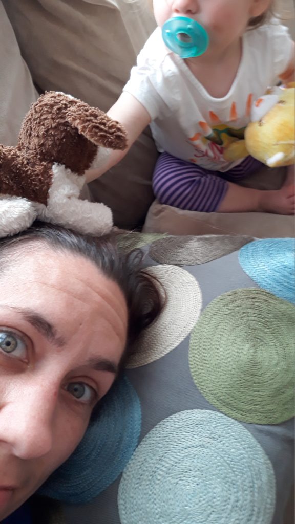 So Friday I spent most of the day on the couch. I had a Zoom meetup with a few friends and had a few too many adult beverages. Thankfully the older girls were content playing and watching a movie, and Aubrie took a pretty decent nap, and also had fun putting stuffed animals on my head as I was laying down.
