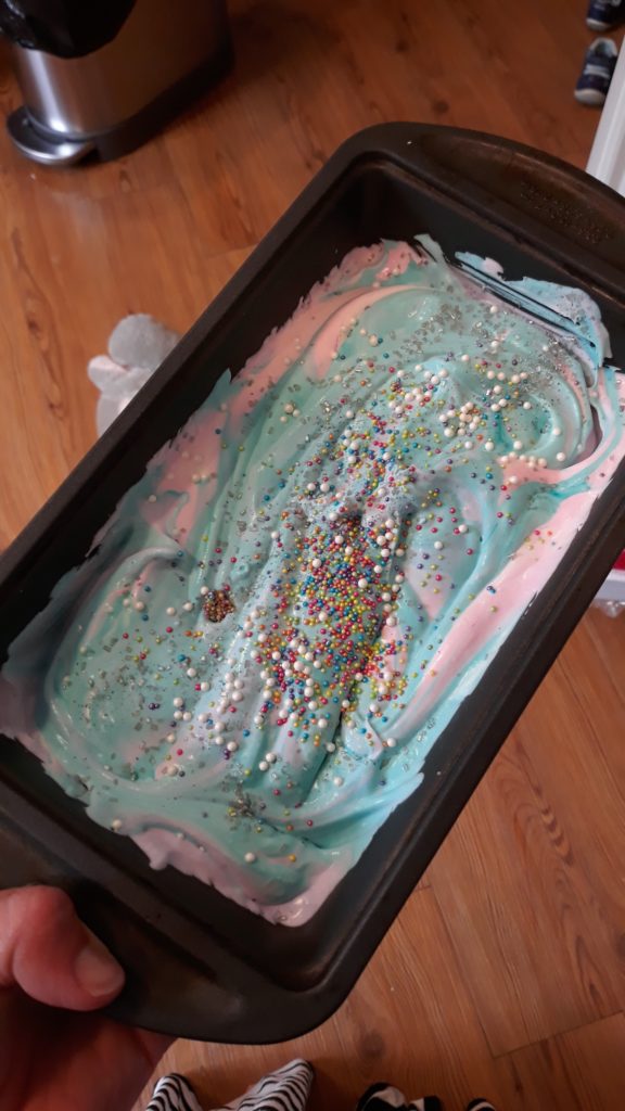 I also made some “unicorn ice cream”, which was a hit. Pro tip… scoop out the ice cream prior to the party and let the scoops sit in the freezer for a bit. Then you can put them into a bag and not have to worry about scooping ice cream.