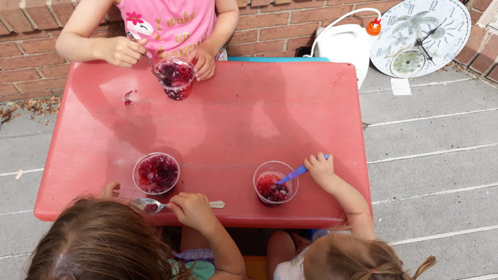 The girls are onto their second reading log. They’ve already accrued about 7 hours. Our latest reward was homemade snow cones! I made homemade syrup as well, and I have been contemplating putting them on the blog.