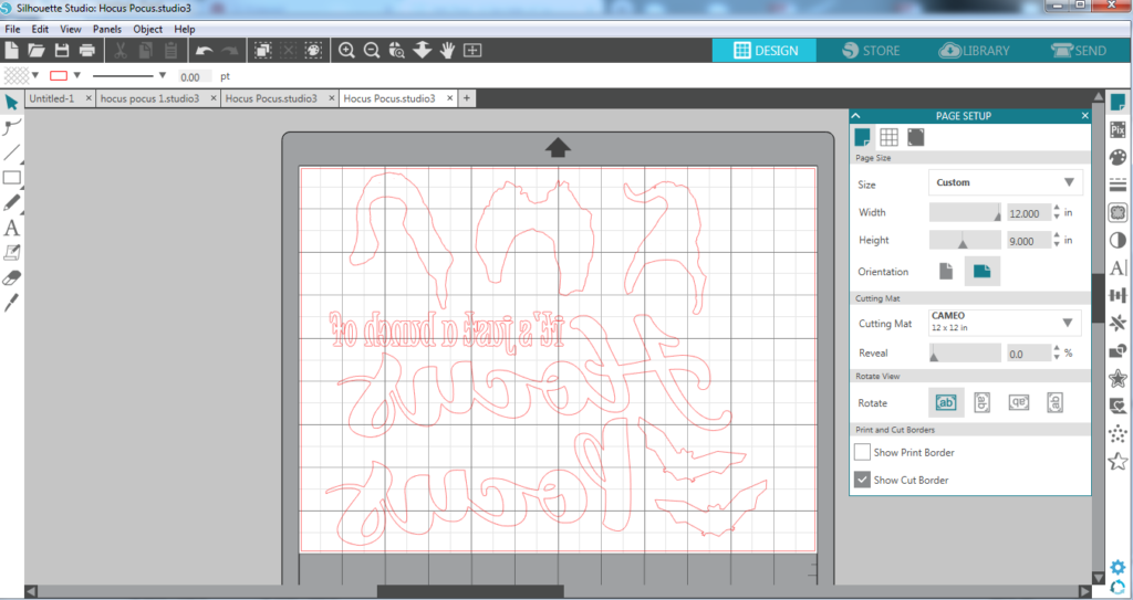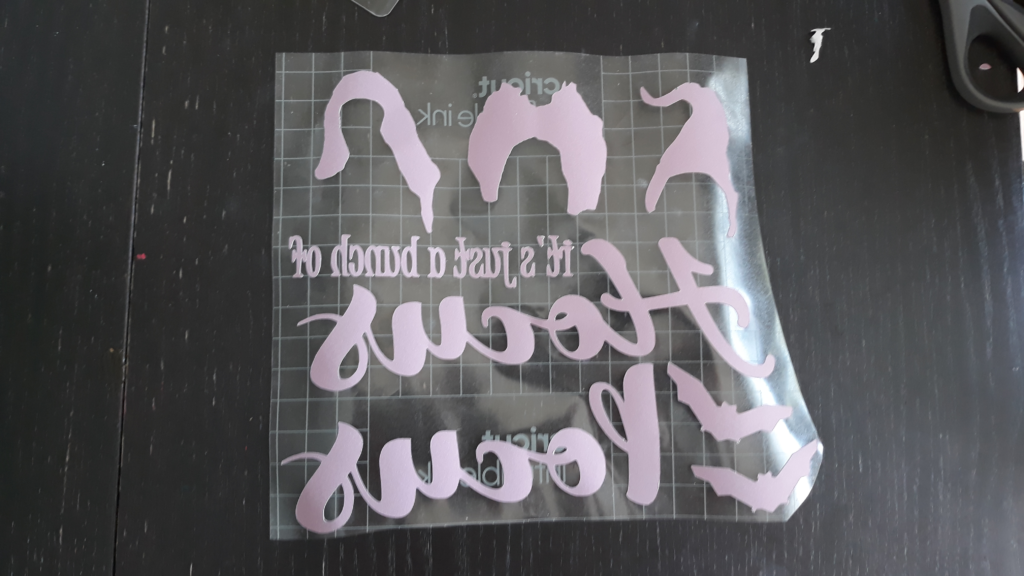 First off create your design. You can get the cut file for my Hocus Pocus shirt here. Be sure to mirror your design (just like you would do with HTV).