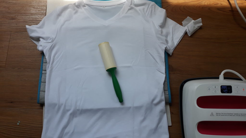 You will want to lint roll your shirt. This is to insure there are no other fabric fibers which will make the infusible ink not work quite as well.