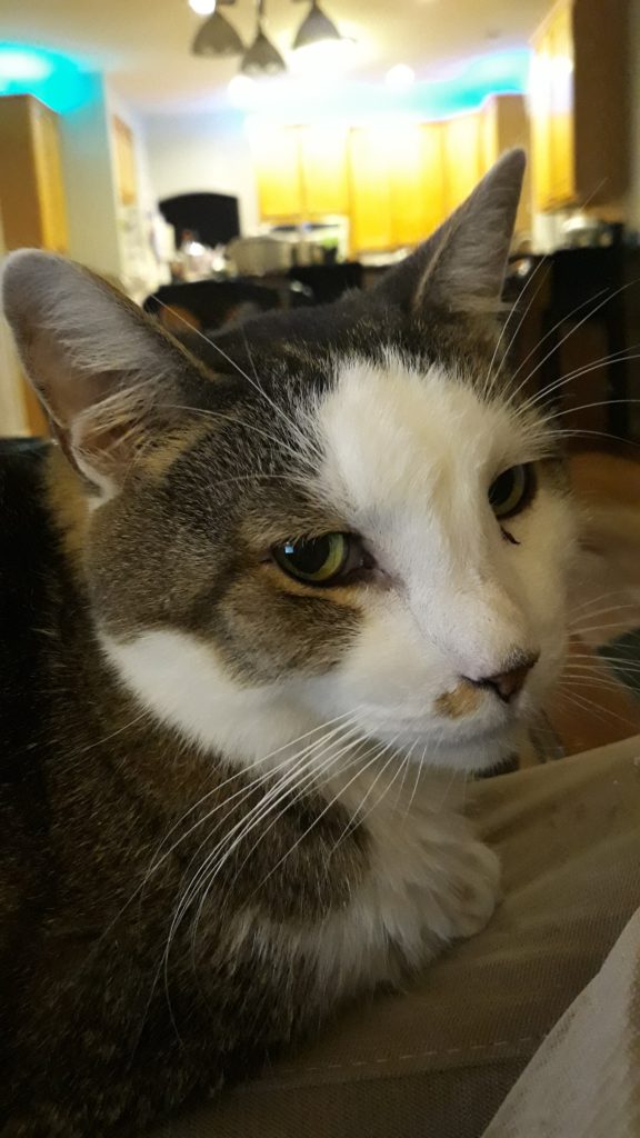 Saying goodbye to our cat Snickers. For the past two years he has be pooping (and sometimes peeing) outside the litter box. We didn’t know if it was behavioral (our other cat had done the same thing, but she had cancer) or if he was sick. We took him to the vet again yesterday, and he has lost weight, and the vet suspects that he has cancer. So now we wait for the blood results.