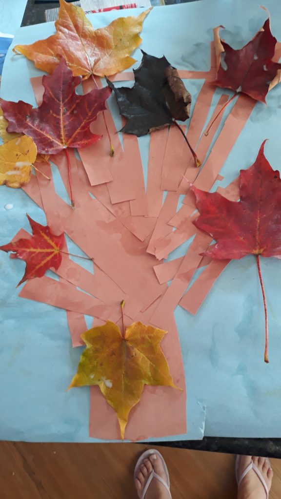 Since Autumn doesn’t have school on Friday, we went on a nature walk to collect leaves for a little project.