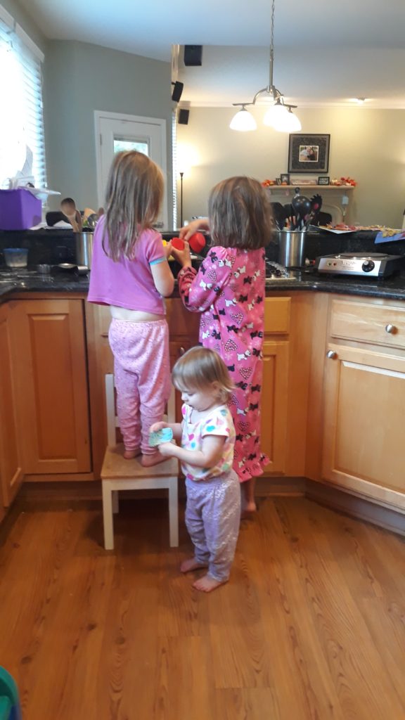 On Saturday the girls and I made banana muffins.