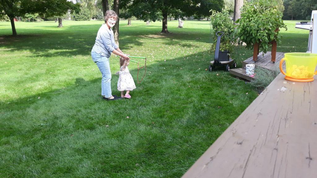 Then we went to my parents’ house for dinner. My mom bought one of those big bubble wand things, and my girls had a blast!