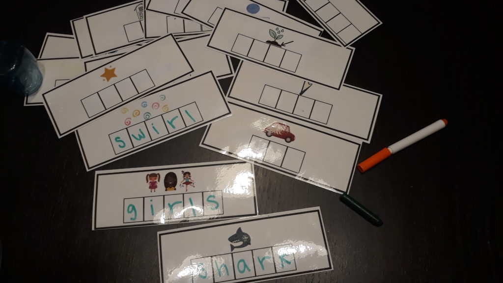 I also made and laminated cards for her to figure out what r-controlled vowel belongs in the word. While only -ir and -ar are done right now, I plan on updating the file when the rest are complete.