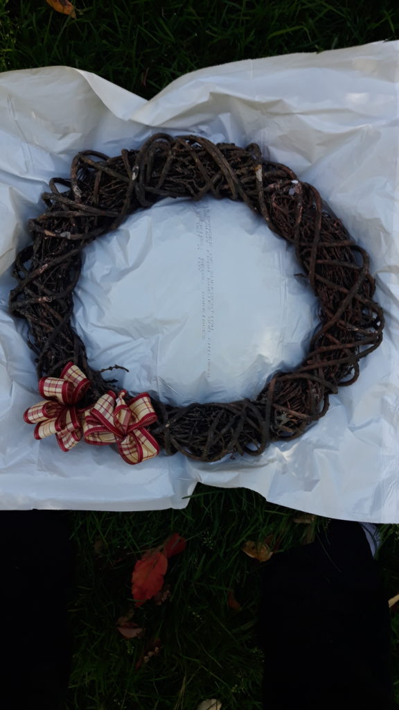 Here is how the wreath looked when I brought it home for Salvation Army.