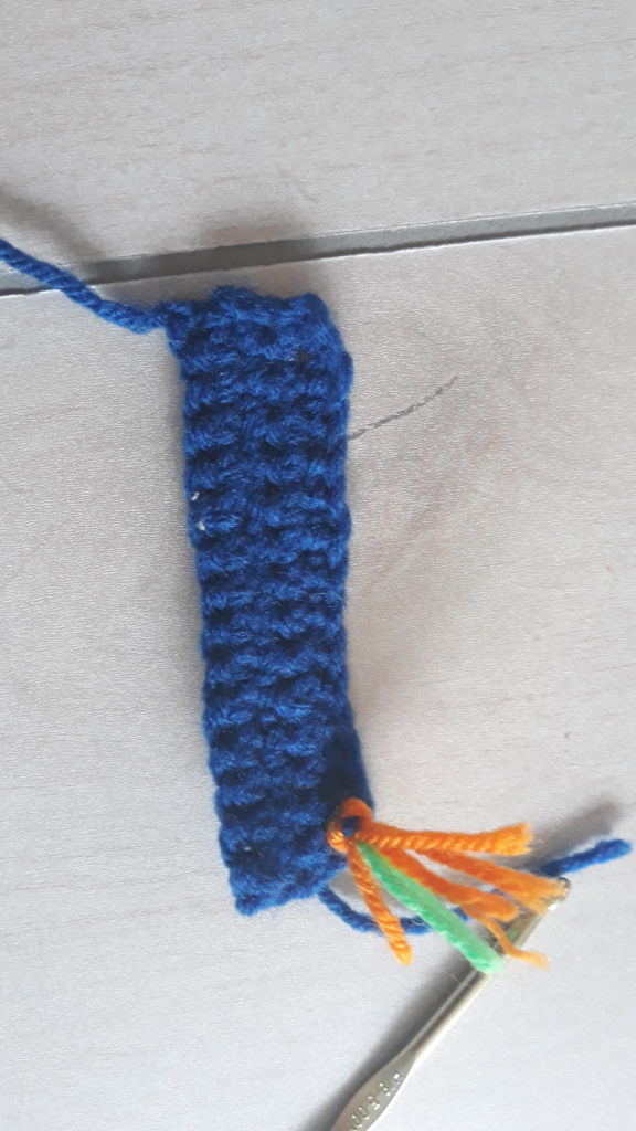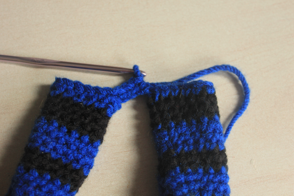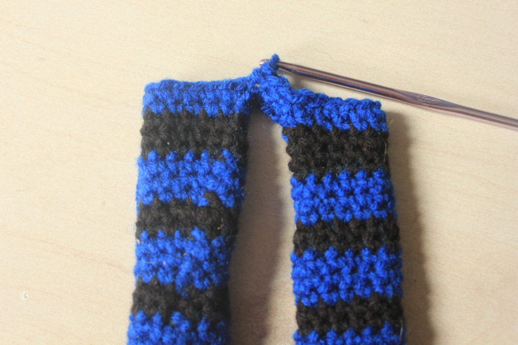 next single crochet around the second leg (12 single crochets), finally sc in each stitch on the opposite side of the chain (3 single crochets). All together you should have 30 SC