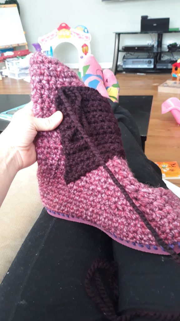 Two or three years ago I bought some yarn with the purpose of making myself slippers with flip flop soles. I finally started working on them!!