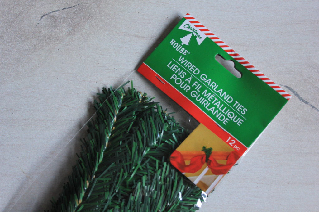 This is what the garland ties look like. They come in packages of 12. The amount you need all depends on how many wreaths you want to make. I bought a bunch of them since any extra I will use to tie our garland onto our banister.