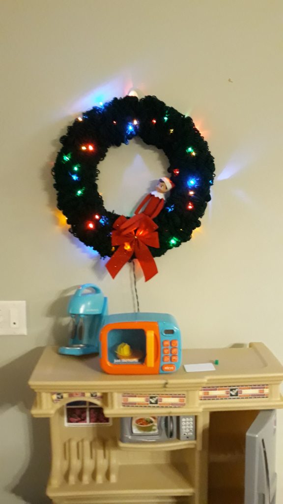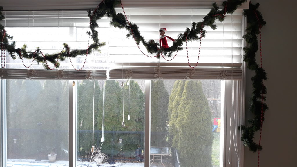 Jingles the Elf is back. I figured I’d share where we’ve been finding him every morning. Thankfully he doesn’t get into too much trouble. 😉