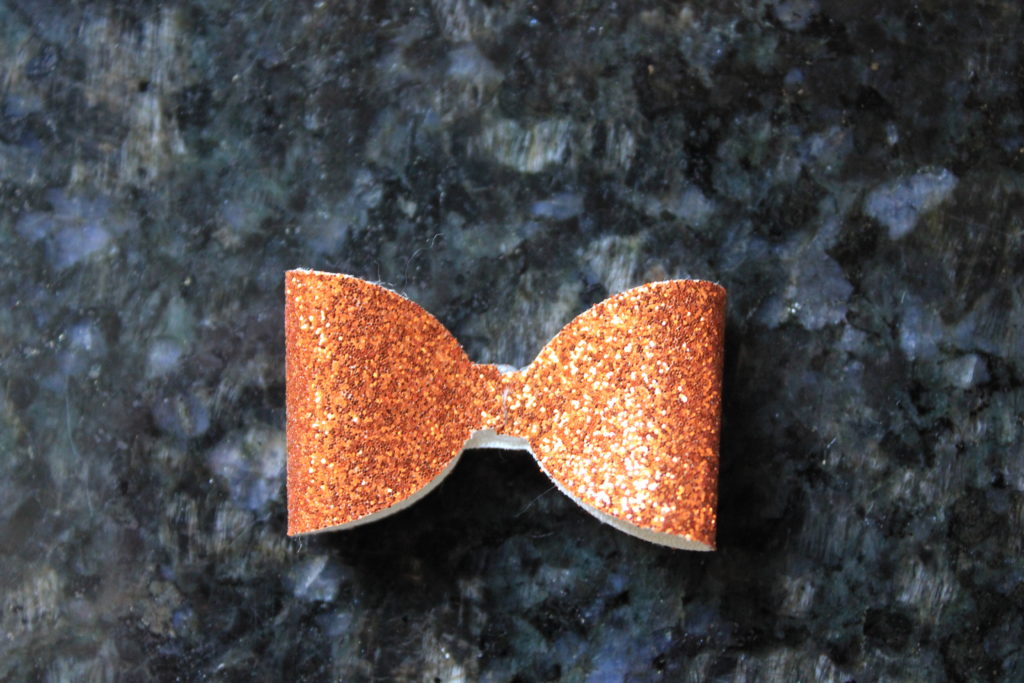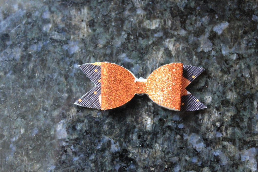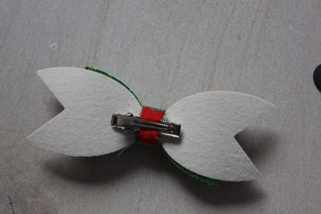 Glue the clip on the back of the bow. I like to take a small strip of felt and wrap it around the top part of the clip (the part that is glued to the bow) to help hold it in place.