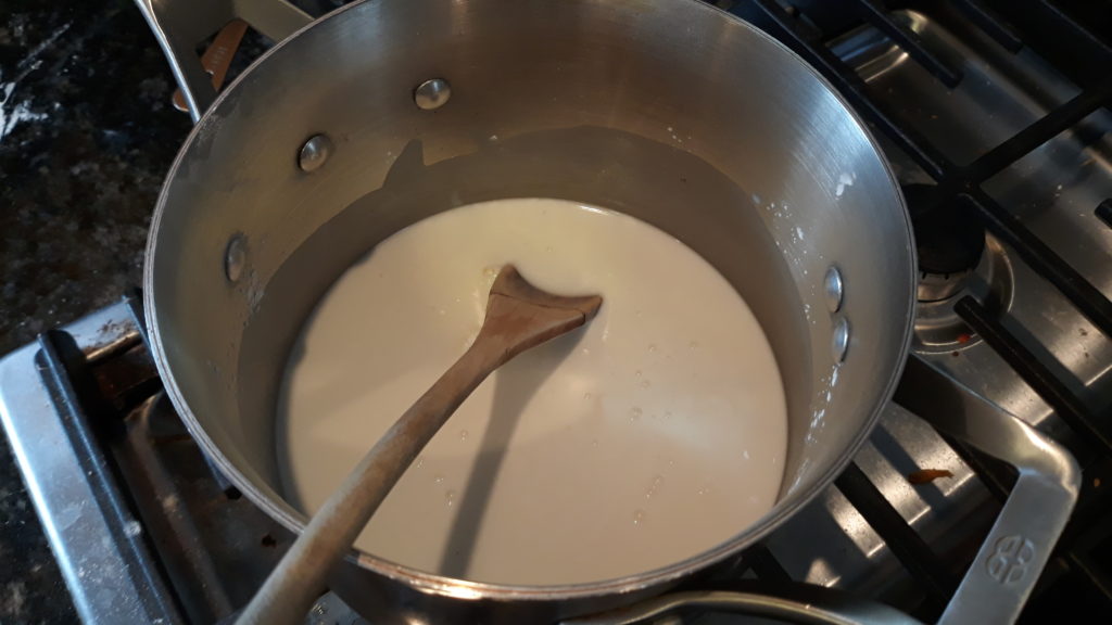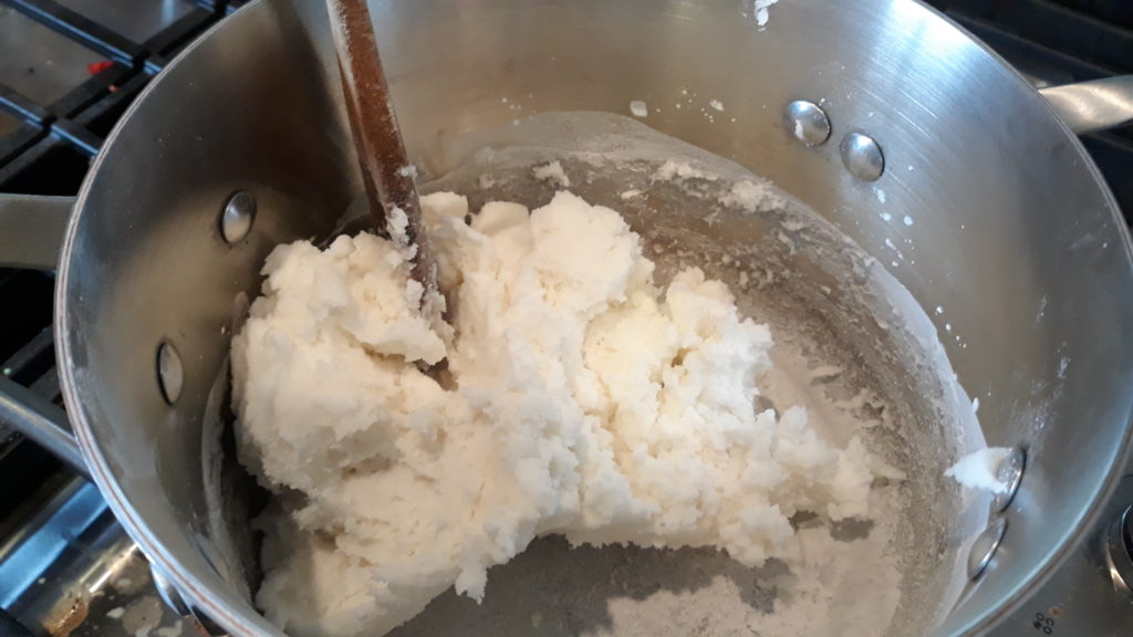 Cook until it starts to form a dough. Don’t cook it too long, as the dough will start to dry out. I think I may have cooked it a little to long, as the dough was just a little dry.