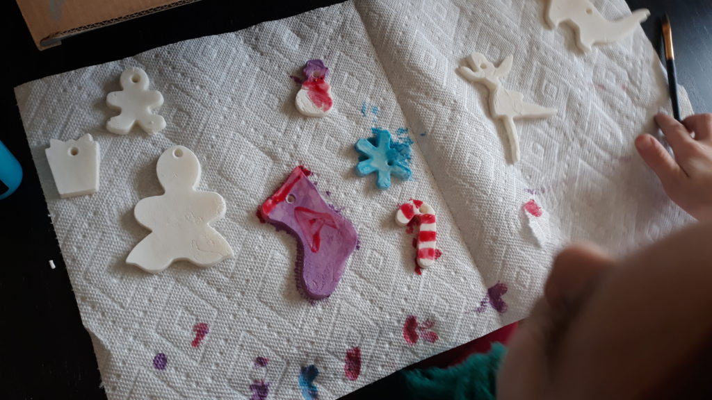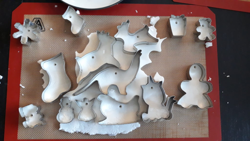One of the items on our Christmas bucket list was to make ornaments. In years past we have gone the salt dough route, but when heard about baking soda ornaments I knew I had to give it a try. I was a little worried at first with how they would dry, but they ended up turning out OK in th end.