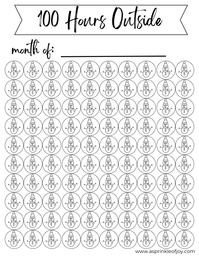 Free 100 Hours Outside Winter Printable Tracker