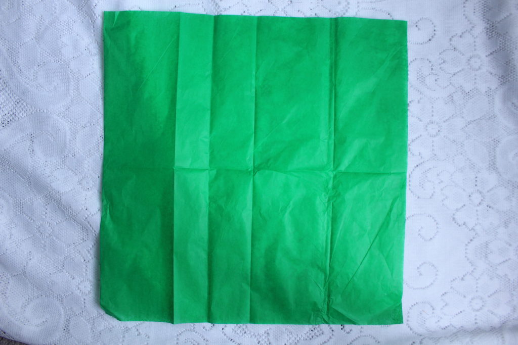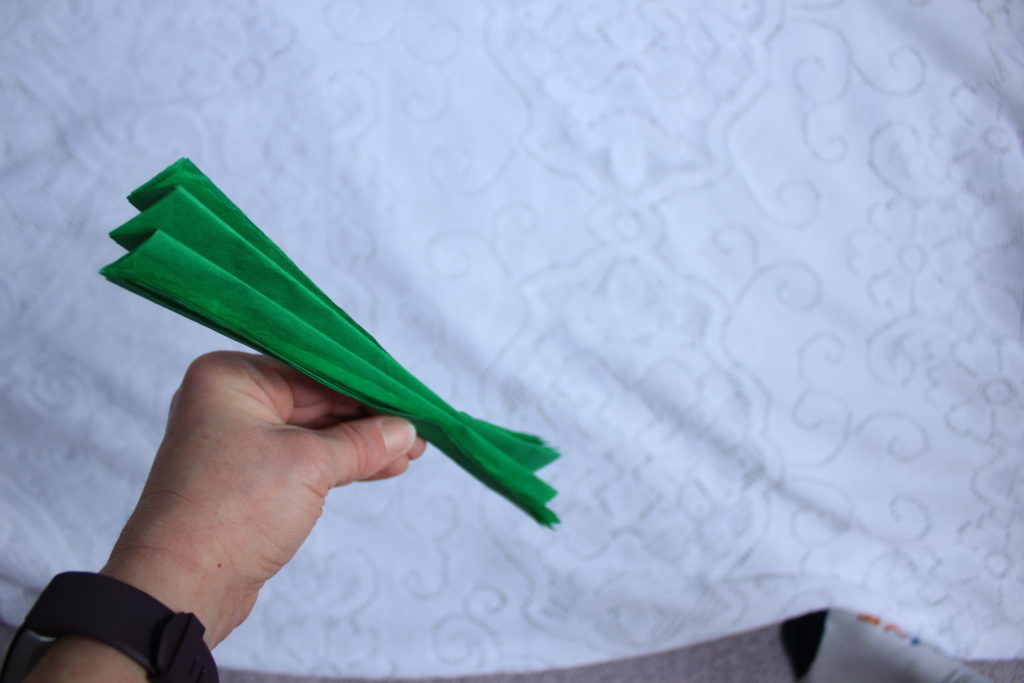 Stack all the tissue paper into a pile and accordion fold them ( you know, like you are making a fan).