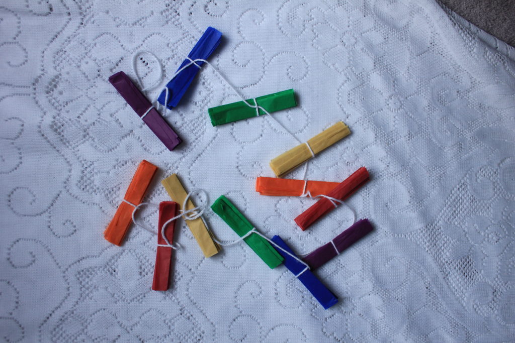 Round each edge of the fan. I meant to to do this before I tied them onto the string, but thankfully it worked fine like this.
