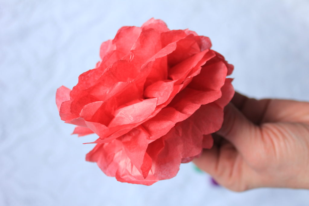 Now you can start opening your poms. Simply start pulling the layers apart. You will want to be be gentle so the tissue paper doesn’t rip. When you are done, admire your work!