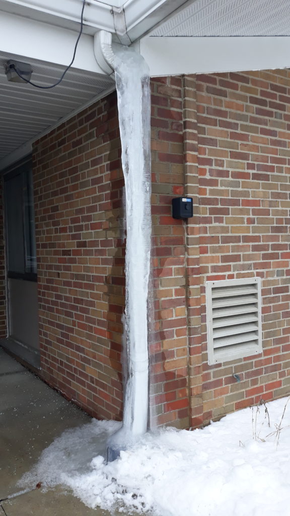 While I know this really isn’t an icicle, it’s still a huge chunk of ice. We pass a preschool on our walk to take Annabelle to school. One day as we were walking by we noticed the drain pipe was completely incased in ice. Obviously the drain pipe was not working properly, but the girls and I still thought it was pretty cool (no pun intended… hahaha).